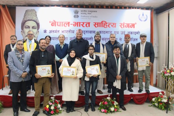 کٹھمنڈو / کیر خبر بھارتیہ سفارت خانہ اور اردو اکیڈمی نیپال کے اشتراک سے منعقد مشاعرہ جشن غالب روایت سابقہ کے تحت امسال بھی کاٹھمانڈو (نیپال بھارت لائبریری) کے اندر نہایت ہی دھوم دھام اور اپنی تمام تر کامیابیوں کے ساتھ پایۂ تکمیل کو پہنچا مشاعرے کی صدارت معروف شاعر پروفیسر سنت کمار اوستھی جب کہ نظامت کا فریضہ اردو اکیڈمی نیپال کے صدر معروف شاعر جناب امتیاز وفا نے...